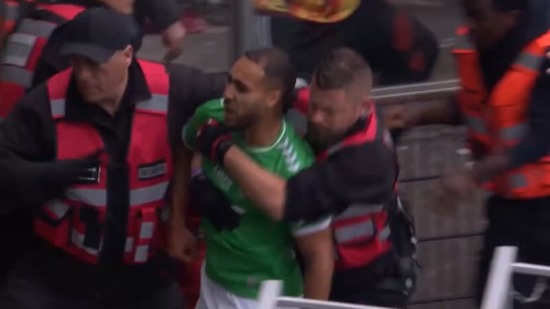 Yvann Maçon (25 ans), défenseur de Saint-Etienne, a été violemment repoussé par un stadier alors qu’il célébrait un but de son équipe… finalement refusé, dimanche lors du barrage L1-L2 à Metz (2-2, a.p.).